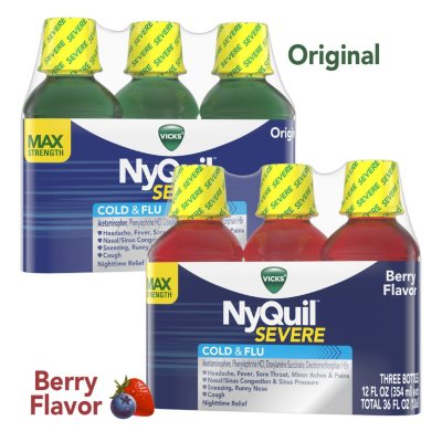 Vick S Nyquil Severe Cold Flu Relief Liquid Choose A Flavor Berry Or Original 12 Fl Oz 3 Pk Sam S Club